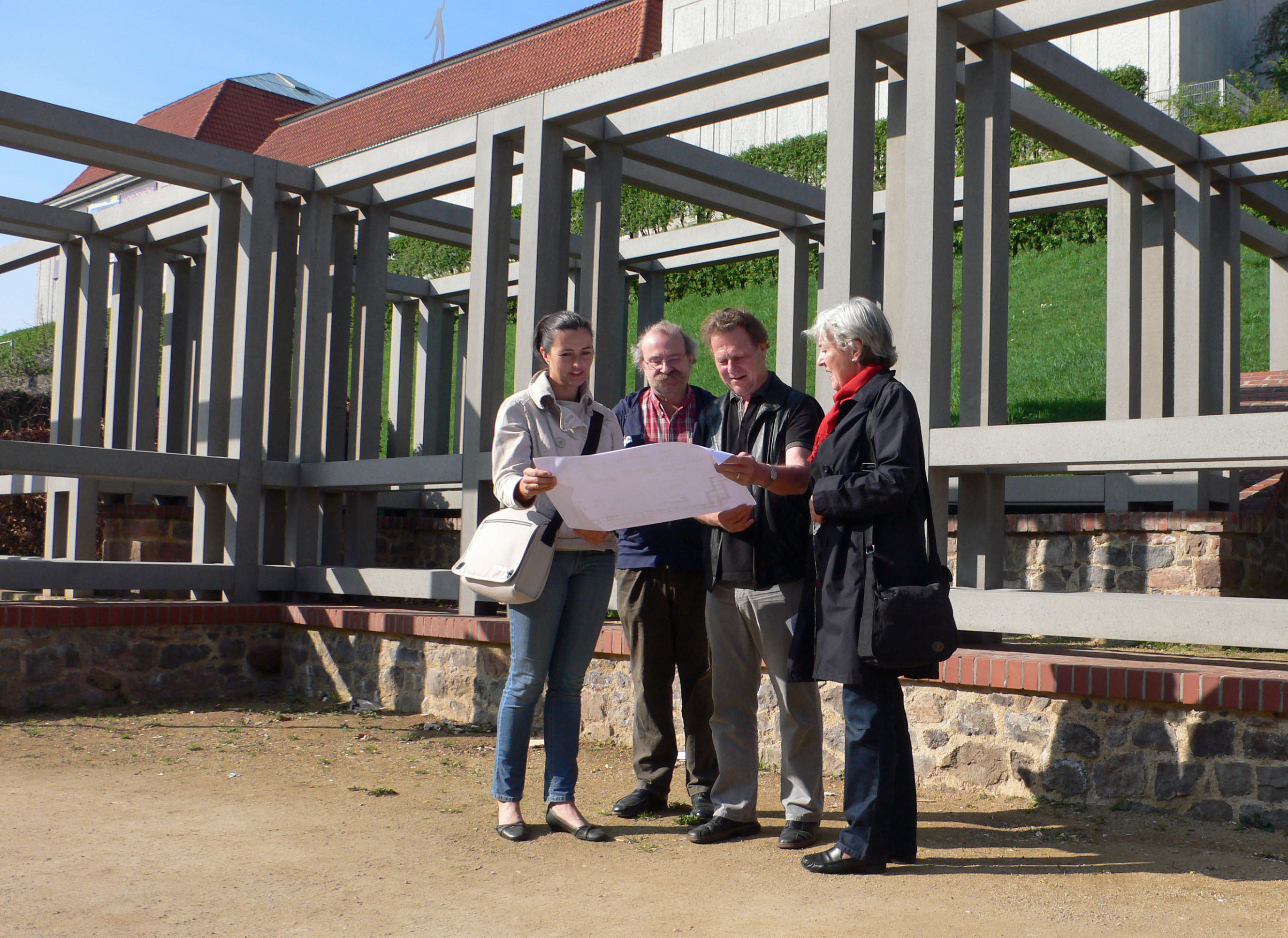 Am 8. April 2011 fand eine Besprechung zur Ausführung Bepflanzungsauftrags statt. An diesem Treffen nahmen Frau Uta Bollmann von der beauftragten Fa. Gartengestaltung formundlinie, Seeheim-Jugenheim (www.formundlinie.de), Herr Preusch, verantwortlich für die Technik auf der Mathildenhöhe, sowie Hans Gerhard Knöll, Christiane Geelhaar, Sandra Klein und Claus Dieter Knöchel als Mitglieder unseres Vereinsvorstands teil.