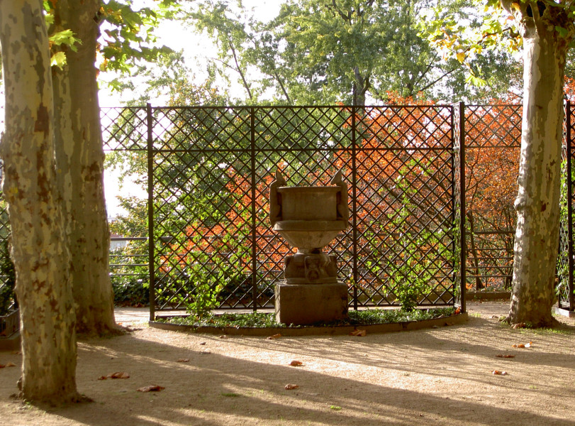 Kürzlich wurden auch die golden schimmernden Ziergitter an den beiden letzten sanierten Rankgitter aufgestellt und die Pflanzen (Bodendecker vor den Reliefwänden und Efeu an den Rankgittern) gepflanzt. Damit ist die Sanierung aller Hoetger-Objekte innerhalb des Platanenhains abgeschlossen. Hier können Sie einen Eindruck an einem Sommerabend gewinnen. (18.06.2019)